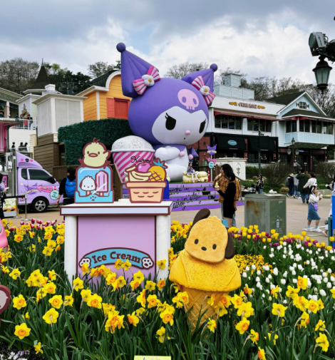 에버랜드의 메인 무대인 약 1만㎡ 규모의 포시즌스가든에는 헬로키티, 마이멜로디, 쿠로미, 시나모롤, 포차코, 폼폼푸린 등 총 아홉 가지 산리오 캐릭터즈의 테마존이 마련되어 있습니다. 각 테마존에서는 캐릭터별 스토리를 귀엽고 재미있게 체험할 수 있으며, 아이들과 함께 사진을 찍기에 최적의 장소입니다.